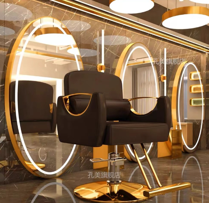 This luxurious salon/barber chair features a comfortable seat with elegant metal accents, offering a stylish and sophisticated appearance. The product is available in three different colors, making it suitable for various barbershops or beauty salons.